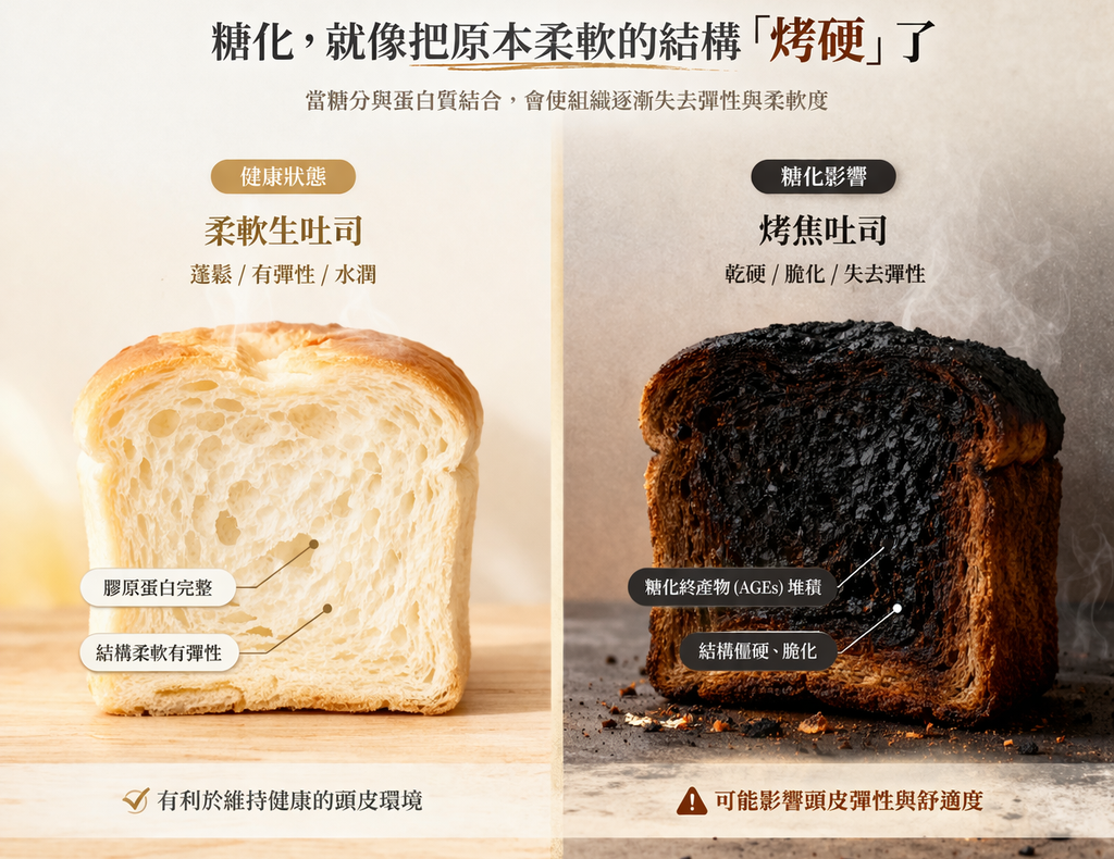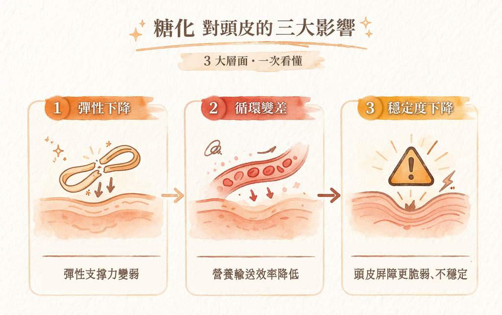 糖化與氧化壓力相關,可能使頭皮更容易出現乾燥或敏感狀況。